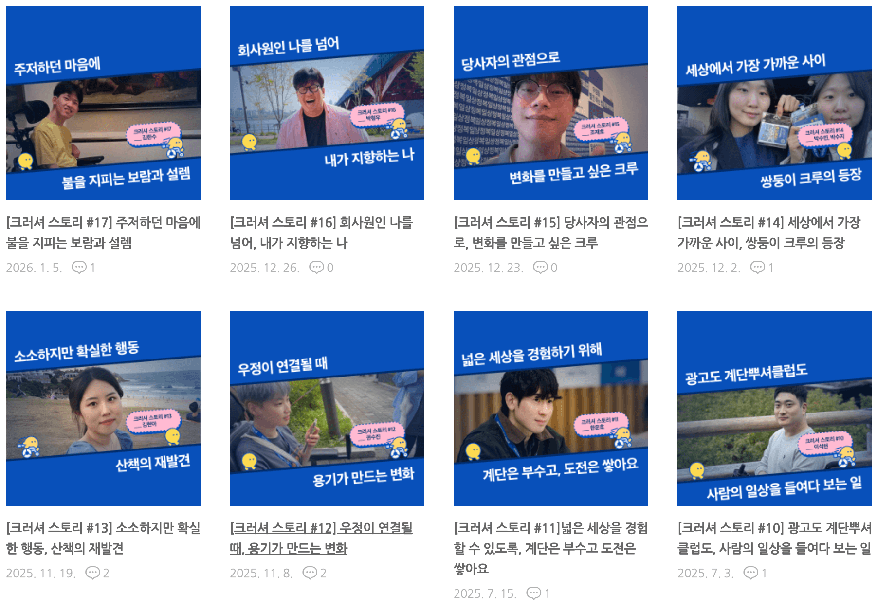 • 역할: 크루 인터뷰 콘텐츠에 참여할 크루 섭외, 인터뷰 기획 및 진행, 콘텐츠 제작